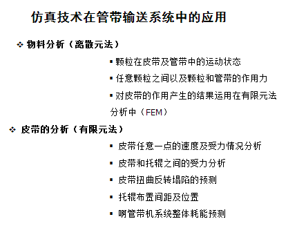 接下来,我们从DEM技术、FEM技术、DEM与FEM耦合技术和在管带输送系统中的应用四个方面来进行仿真模拟技术的介绍: