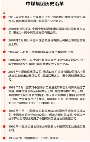 从1982年的中国煤炭进出口公司,到如今的中国中煤能源集团有限公司(以下简称“中煤”),经过三十余年的发展,中煤已经成为集煤矿设计、建设、煤炭开采、煤机装备制造、煤化工等多元业务为一体的大型煤炭央企,是仅次于神华的煤炭巨头。
