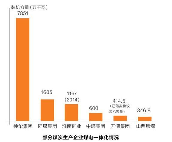 在煤炭企业的涉煤业务中,排在首位的便是煤电。煤电一体化是煤炭企业抵御风险、延长产业链并实现多元发展。截至2015年底,全国煤炭企业控股和参股燃煤电厂总装机容量达到1.5亿千瓦。
