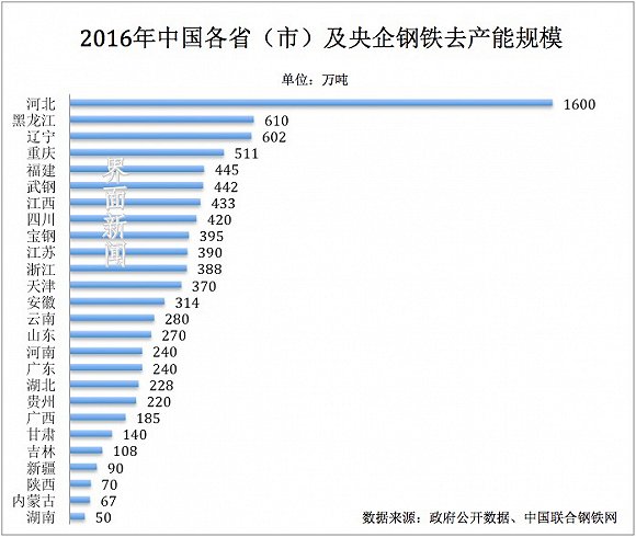 不少省份超额、提前完成年度乃至“十三五”任务。中国最大的产钢省河北,去年压减炼钢产能1600万吨,是原计划的两倍。浙江省也在原计划303万吨的基础上,超额压减炼钢产能85万吨。黑龙江省在去年,完成了原本应在五年内完成的610万吨压减任务。