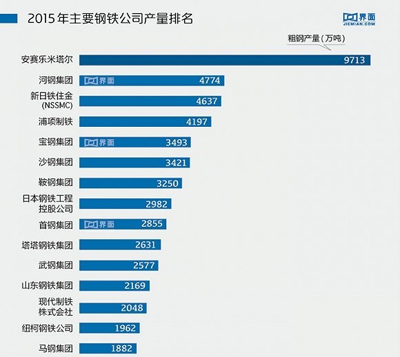 两者合并后,全球钢铁行业的公司座次将因此改写。2015年,宝钢集团的粗钢产量约为3493万吨,而武钢集团的粗钢产量为2577万吨,两者分别位居全球第五和第十一位。在这份全球钢铁公司产量排行榜上,安赛乐米塔尔和河钢集团以9713万吨及4774万吨位居前两位。