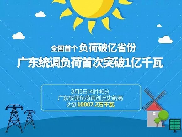 8月8日,广东统调负荷再创历史新高,达到1007.2万千瓦,成为全国首个负荷破亿省份。